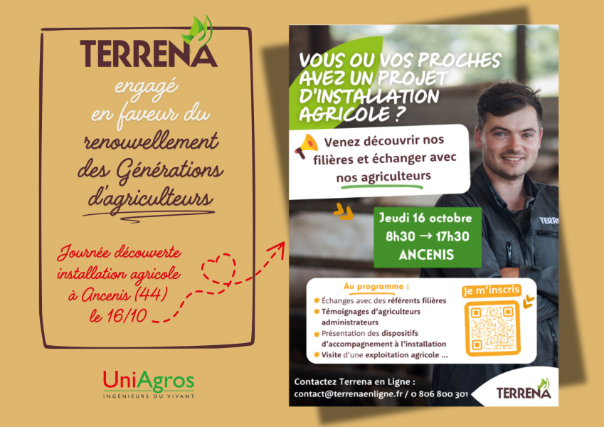 Dans le cadre de son engagement en faveur du renouvellement des générations d'agriculteurs, Terrena [partenaire d'UniAgros] organise des journées d’information au sujet de l’installation agricole.